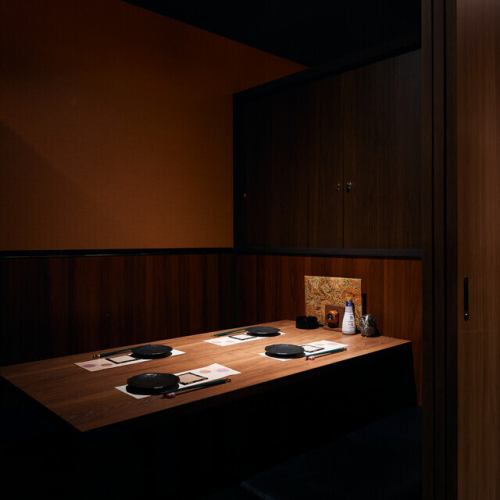 【完全個室】周囲を気にせず過ごせる完全個室を完備。2名様専用のプライベート空間から、グループ利用に最適なゆったり個室まで幅広くご用意。大切な記念日や接待、デートにもぴったりな落ち着いた雰囲気で、都会の喧騒を忘れさせる上質な時間をお過ごしいただけます。